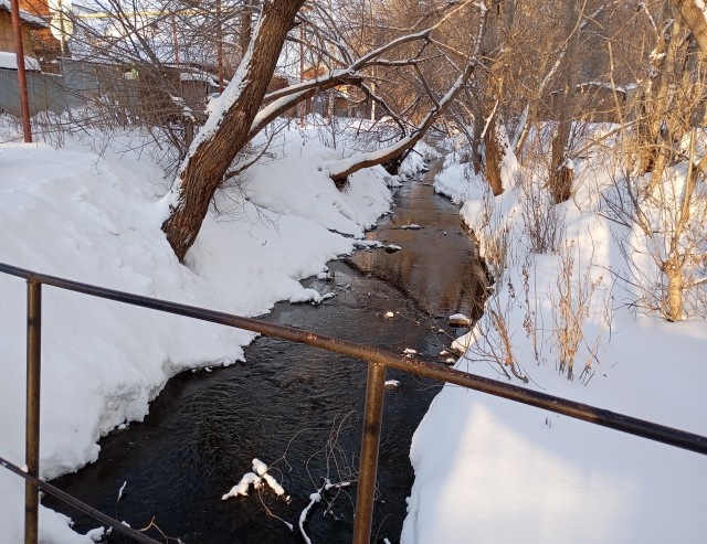 В городе течёт неглубокая речка Пивоварка. И вода в ней не замерзает. А ведь миновало уже практически половина зимы. 8 фото. Поднимаемся в верх по течению Пивоварки примерно на 1 километр. Парк Юбилейный. Небольшой водоём в русле реки. Здесь летом живут дикие утки. Утки улетели на юг, речка замёрзла. Пивоварка впадает в черте города в реку Барнаулку. Здесь тоже всё как и должно быть в Сибири в середине зимы. Барнаулка в свою очередь также в черте города впадает в Обь. Но Оби ледостав. Река Обь. Так в чём же причина? Почему мелкий, по сути ручей, не замерает? Там течёт пиво? Или ручей питают подземные гейзеры? Нет. Всё гораздо прозаичнее. Это "чудо" природы жители города оплачивают из собственного кармана. Всё дело в прогнившей системе отопления. Фото в районе остановки "Чайка" по улице Северо-западная. Порою в систему отопления добавляют краситель, якобы чтобы лучше было видно места порывов. И тогда вода в Пивоварке становится зелёной, и местные жители именуют её Тархункой. Источник