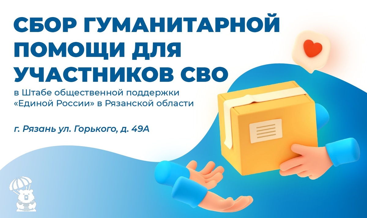 В штабе общественной поддержки «Единой России» в Рязани проходит сбор гуманитарной помощи для участников СВО. В штаб общественной поддержки «Единой России» обратилась мама участника специальной военной операции с просьбой о помощи в сборе гуманитарной помощи для наших бойцов. Представители штаба пригласили всех желающих присоединиться к этой важной инициативе. Среди необходимых вещей: Гуманитарную помощь можно приносить по адресу: ул. Горького, 49А. Для получения подробной информации звоните по телефонам: 8-920-988-10-28, 28-43-13, 28-43-23.