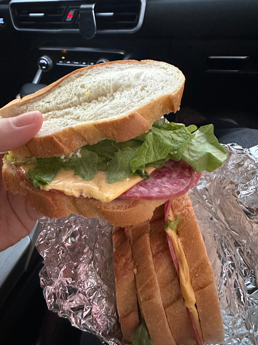 С собой на завтрак взяли стандартные «дорожные» бутерброды, это уже стало традицией, на удачу!