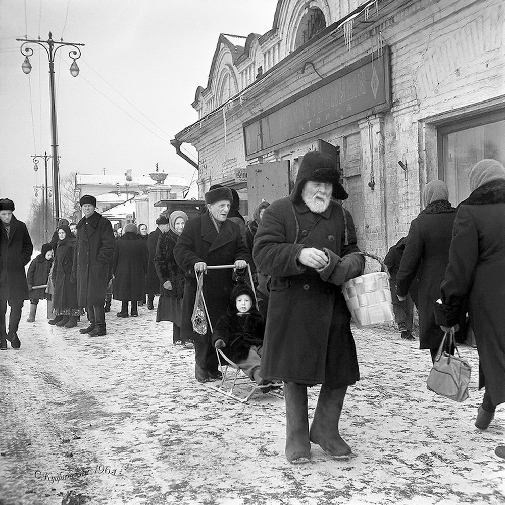 На снимке Станислава Кудринского улица Папанинцев в 1964 году. Сразу за домом вход на Колхозный рынок. В 1965-м улицу переименовали в проспект Победы. Сложно сказать по снимку, есть ли на тротуаре гололёд, как бывает на улицах Вологды в наше время. А ведь про скользкие тротуары в городе писали и 100 лет назад. Вот, например, в газетной заметке за январь 1910 года жалуются: «После наступившей оттепели вновь подморозило, тротуары обледенели и по ним опять стало трудно ходить. К сожалению, далеко не все домовладельцы подчистили тротуары и посыпали их песком. В воскресенье, например, публика, возвращавшаяся ночью из ярмарочных увеселительных балаганов, страдала от обледенелых тротуаров на Гостинодворской площади с угла Малой Дворянской улицы. Между прочим, один из возвращающихся от балаганов молодой человек, упав здесь на тротуар, расшибся очень сильно». Гостинодворская площадь это современная улица Мира, а Малая Дворянская это Октябрьская улица. Кабаки для увеселения там поблизости и сейч
