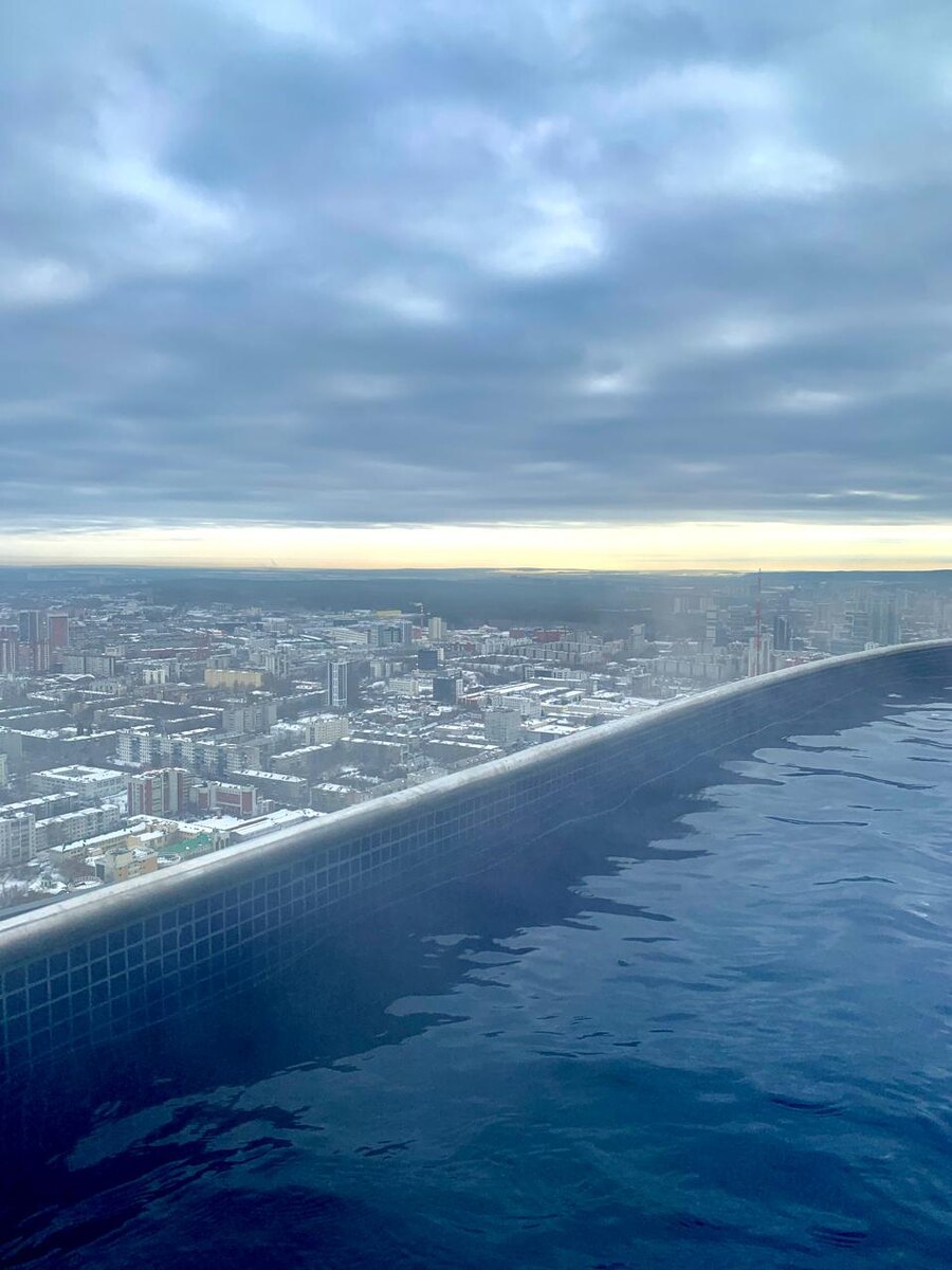 На 56 этаже небоскреба «Высоцкий» в Екатеринбурге, на высоте 188 метров, расположен уникальный бассейн — два открытых резервуара (20 и 11 м²).