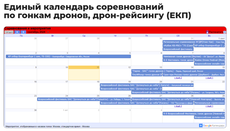По ссылке содержится единый календарь по гонкам дронов в РФ. Хотите узнать, когда соревнования и гонки дронов? Заходите!