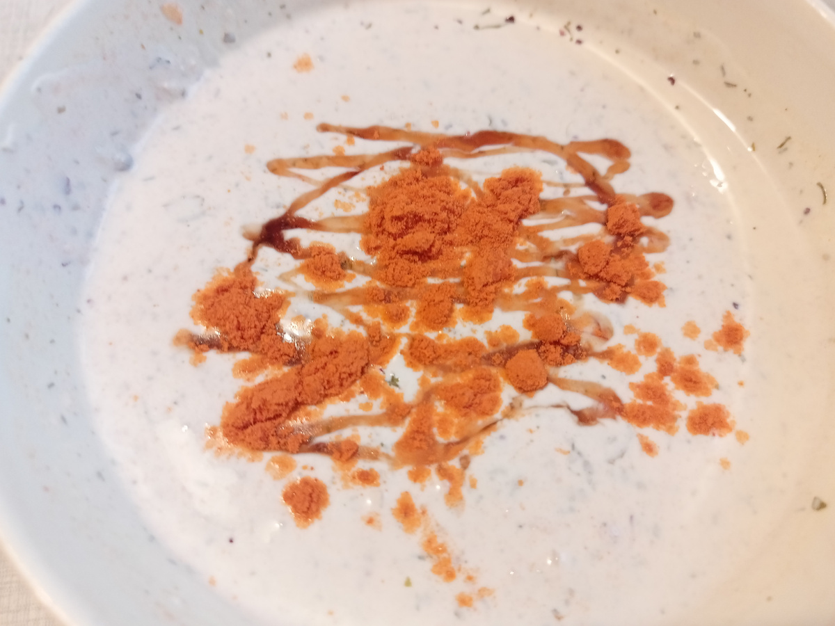 Ингредиенты: Сметана Аджика сухая Соус овощной домашний Сухие травы Паприка Наршараб Кунжут Способ приготовления: Возьмите пиалу в которой будете готовить соус. Сметана может быть разной, в зависимости от того, какую именно вы едите. Выкладываем половину пачки сметаны в пиалу. Ну взяли мы например 300 грам магазинной сметаны. Нам потребуется 1/3 чайной ложки сухой Аджики, добавьте её в сметану, и теперь хорошо размешайте. Соус овощной домашний - что же это такое. Это обычные домашние заготовки. Это может быть Сацебели, Аджика, Ткемали, перетертые томаты с луком, перетертые томаты с перцем и луком или другие варианты домашних соусов. По сути так же подойдет, если вы просто заготавливается в пюреобразном виде или частями, кусочками разные овощи - закрутки в банке, что-то типа Лечо. Берём мы наш овощной набор, что у вас будет уже выбирать вам. И две столовые ложки добавляем в сметану. Теперь возьмите немного разной сухой зелени - укроп, петрушка, базилик и так далее - именно то, что ва