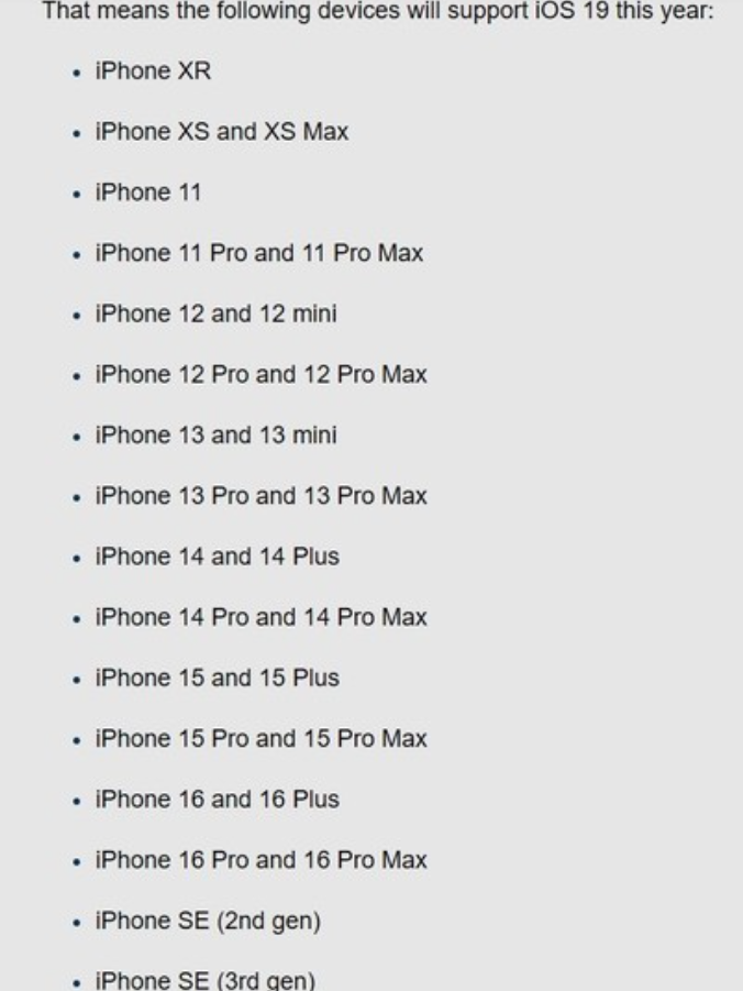 Пять месяцев – и перед нами предстанет iOS 19, очередная глава в истории операционной системы Apple, которая обещает революционные изменения. Один из самых волнующих вопросов для пользователей – совместимость. По предварительным данным, iOS 19 будет поддерживать все устройства, совместимые с iOS 18. Полный список iPhone, указан на изображении ниже.