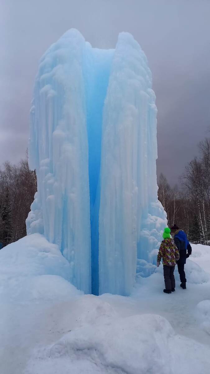 В последний день новогодних каникул, мы с Вадимом решили дома не сидеть и отправиться в маленькое приключения. Долго не думая решили съездить на зимний фонтан,который находить в поселке Сибирка Саткинского района, и относится к национальному парку Зюраткуль. С собой позвали мою маму и Вадимину сестру Татьяну, она как раз только приехала с Челябинска. Всех собрали и поехали. Дорога до фонтана (сосульки как называют в народе) занимает примерно 50 км, это около часа езды. Для местных ( имеющие Саткинскую прописку) проезд в национальный парк бесплатный. Для иногородних стоимость составляет 300 рублей с человека. Дорога грунтовая,но ее чистят, правда узкая, но имеются карманы для того что машины могли разъехаться . На перекрестке имеется указатель,где указано,что до фонтана 5 км. И вот наконец это чудо природы Фонтан каждый год разный. В этом году он похож на крылья ангела. В прошлом году он был в форме дельфина. Там так же имеются зоны отдыха, где можно посидеть компании. Если проеха