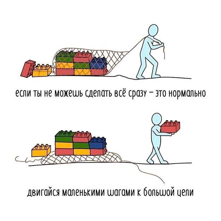 Не забывайте мотивировать себя и заботиться о себе. Сначала убедитесь, что у вас закрыты все базовые потребности, ведь без них у вас просто не останется энергии на что-то новое. Всегда держите перед собой "почему" вы это делаете и зачем. Иначе наш с вами мозг просто будет сопротивляться каждый день новому и не даст нам даже начать. Мы должны понимать, что мы делаем это в первую очередь только для себя. Успехов!