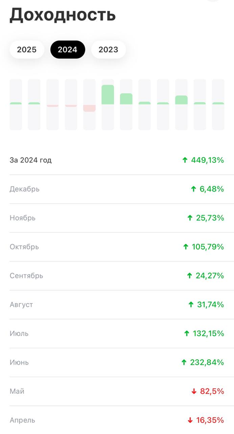 Лично для меня трейдинг – это инструмент, позволяющий создавать неограниченный доход при любых рыночных ситуациях. Мой торговый алгоритм уже доказал свою эффективность: в 2024 году я заработал 449% прибыли на публичном счете в Пульсе, а в первые дни января еще 22% сверху.