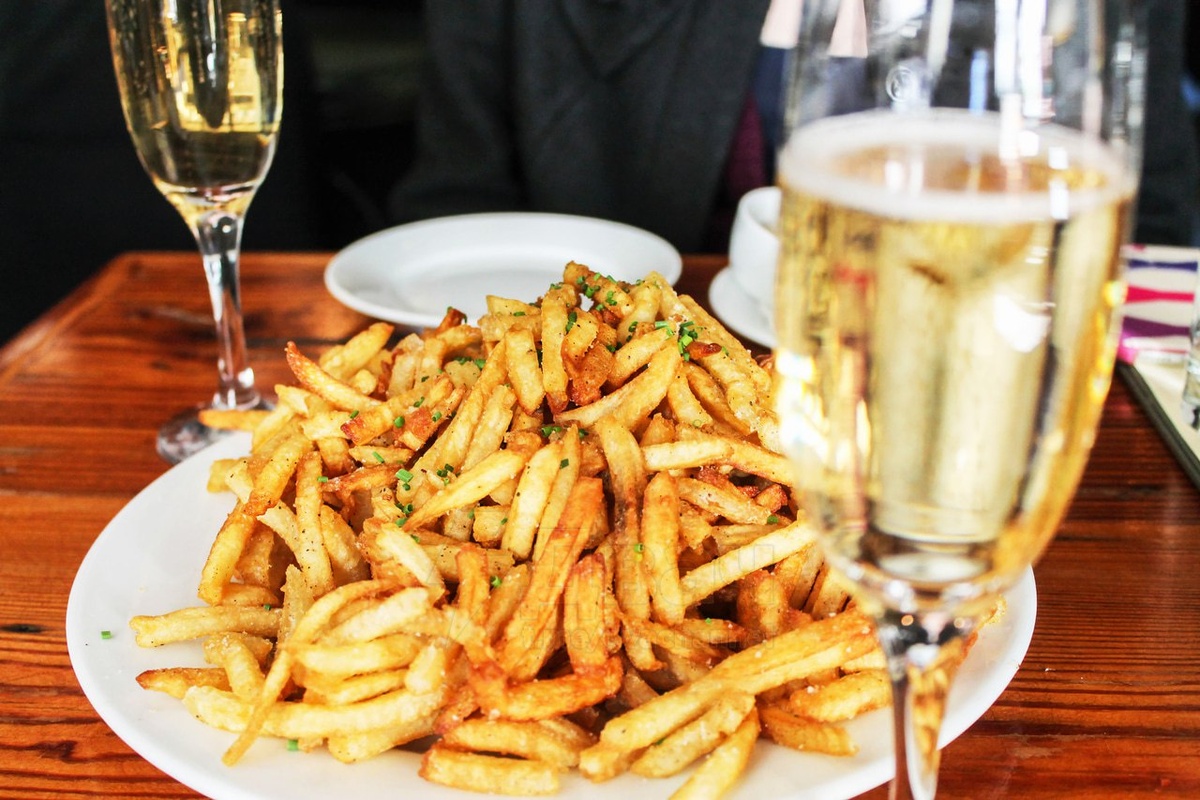 Это событие было связано с открытием нового ресторана в меню которого было такое сочетание: картофель фри и шампанское.