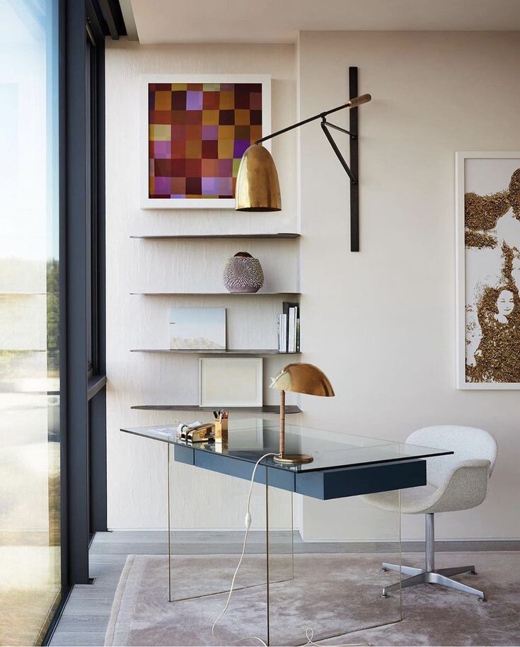 Красота повышает вашу продуктивность на 25%. Это мое субъективное мнение, основанное на внутреннем ощущении. Ловите 5 вариантов оформления рабочего места. Моя недавняя любовь. Обязательно себе такой закажу, пока ищу. Сейчас много вариантов готовых решений. Также конструкцию можно сделать самостоятельно, купив гарнитуру в любом строительном магазине. Подойдет для тех, у кого из рабочих инструментов только ноутбук. Прекрасно мимикрирует под книжный шкаф. Стул убрал и нет никакого рабочего места. Чтобы было не так грустно работать, смотря в стену, сделайте на стене акцент. Обои, плитка, яркая краска. Можно сделать доску для заметок на всю стену из пробки или фетра. Раз уж затронули тему досок для заметок, хочу поделиться моими любимыми решениями. Пишите мне и мы вместе подберем креативное решение для вашего интерьера) Telegram @yanagrabskaya