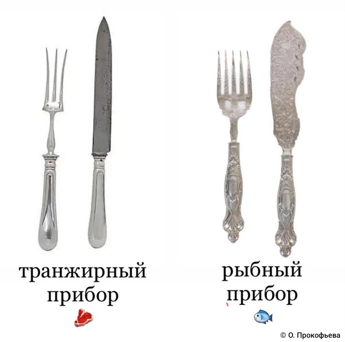 Сталкиваюсь с тем, сервировочные рыбные приборы путают с транжирными, особенно, если осталась только одна рыбная вилка. Наверное, ее размеры и вес так впечатляют 😉что сразу представляется какой-нибудь огромный окорок 🍖
