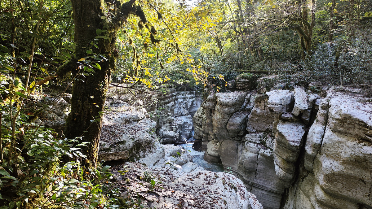 Маршрут короткий, но кажущаяся простота с лихвой компенсируется крутым спуском от дороги вглубь ущелья.