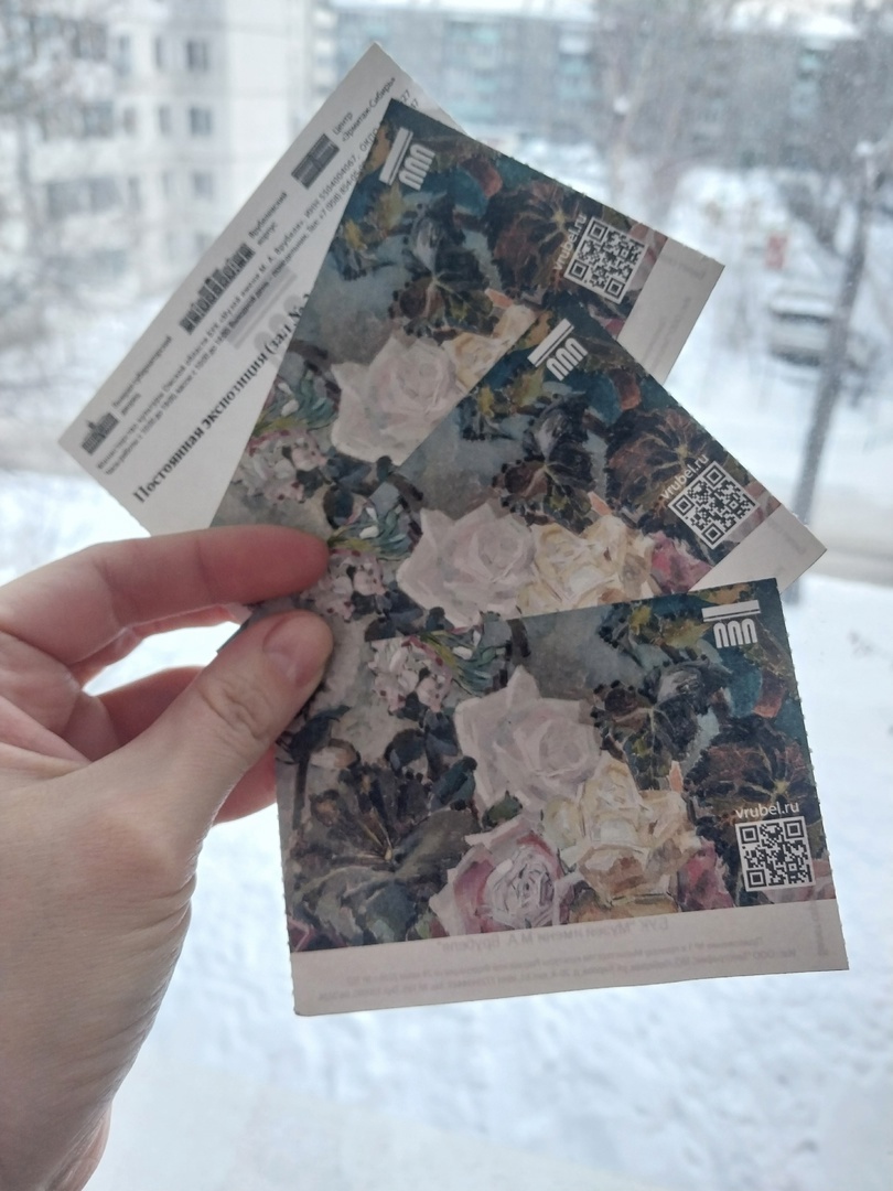 Не то, что бы я такая уж любительница музеев, но... я хотела пойти в музей Врубеля с картинами, но... он оказался закрыт в тот день из-за мероприятия. Пришлось идти в сибирский Эрмитаж на две выставки, т.к. я уже освободила на это первую половину дня и... всё равно бы никуда не успела (это перед соревнованиями было, поэтому примерно прикидывала возможности... никуда далеко из центра бы не ушла уже).