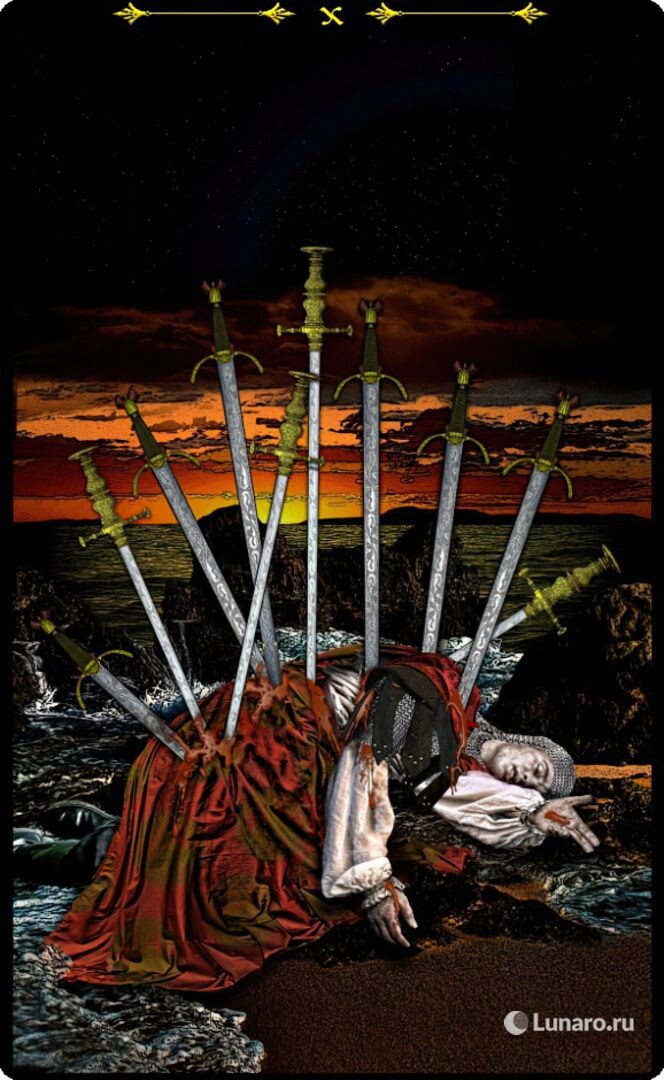 Когда карта 10 мечей появляется в контексте чувств мужчины, она может иметь несколько значений: ▎1. Чувство предательства или разочарования • Мужчина может испытывать глубокие чувства предательства, особенно если он пережил трудные отношения или был обманут. Это может быть связано с его прошлым опытом, который влияет на его нынешние чувства. ▎2. Завершение отношений • Если мужчина находится в отношениях, карта может указывать на его осознание того, что эти отношения подошли к концу. Он может чувствовать, что не видит будущего вместе с партнером и что пришло время двигаться дальше. ▎3. Эмоциональная боль • Мужчина может испытывать сильную эмоциональную боль из-за разрыва или других трудных ситуаций. Это может быть связано как с его внутренними конфликтами, так и с внешними обстоятельствами. ▎4. Страх перед новым началом • Несмотря на осознание необходимости завершить определенные отношения или ситуации, он может бояться сделать шаг вперед. Это может быть связано с неуверенностью в будущ