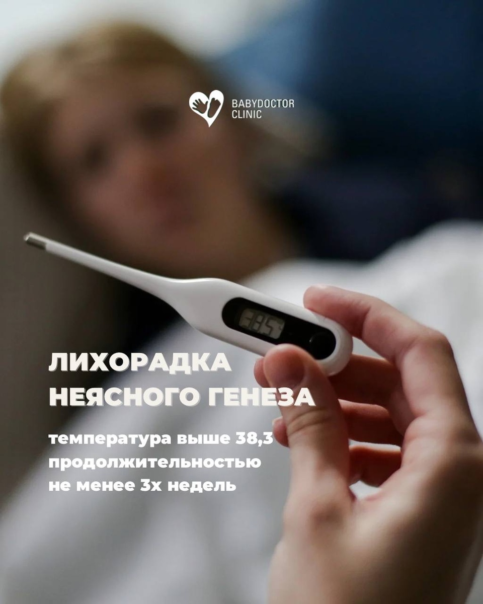 - не установлен диагноз после недели обследований в больнице (по MSD 3 дня обследований в больнице или после 3х и более амбулаторных посещений)