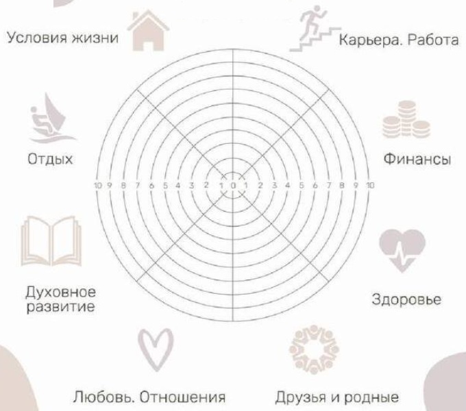Начало года – идеальное время для подведения итогов и планирования новых достижений. Именно в этот период мы чувствуем прилив энергии, мотивации и желания улучшить свою жизнь. Однако постановка целей – это не просто мечты и желания. Это целый процесс, который требует осознанности, структуры и понимания своих приоритетов. Люди часто подходят к планированию года по-разному. Условно их можно разделить на три типа: Каждый из этих подходов имеет свои минусы: Чтобы избежать этих ошибок, важно учитывать жизненный баланс. Он состоит из нескольких сфер: Все эти сферы взаимосвязаны, и дисбаланс в одной может привести к негативным последствиям в другой. Например, чрезмерная концентрация на карьере может негативно сказаться на здоровье или отношениях с близкими. Чтобы понять, в каких сферах вашей жизни есть пробелы, воспользуйтесь простым, но эффективным инструментом – «Колесом жизненного баланса». Шаг 1: Постройте колесо. Нарисуйте круг и разделите его на 8 сегментов, соответствующих основным сфе