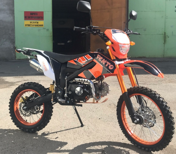 Питбайк Vento 125 — это кроссовый внедорожный мотоцикл, который является спортивным инвентарём. Для управления им не требуется водительское удостоверение и регистрация в ГИБДД.