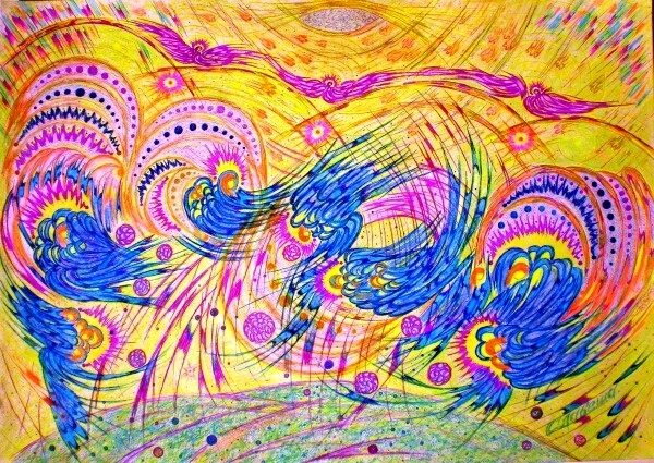 В Солнечную субстанцию каждый раз во время выдоха вливалась определенная совокупность упорядоченных образований. То, что прежде имело лишь форму тепловых яиц, преобразовалось и возникли совершенно особые образования из дыма, обладавшие собственной внутренней жизнью и внутренней упорядоченностью. Эти упорядоченные дымовые образы представляли собой наиболее плотные тела, которыми обладали Архангелы. Пребывая в телах из дыма, газа и воздуха, они населяли древнее Солнце в качестве людей.