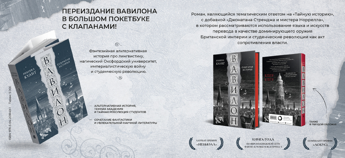 📚 Откройте двери в мир магии и революции с романом «Вавилон» Ребекки Куанг! Лауреат премий «Небьюла», «Локус» и «Новые горизонты», это произведение — не просто книга, а настоящая литература, ставшая «Книгой года» по версии Barnes & Noble и Топ-100 Time. 1828 год, Лондон. Осиротевший Робин Свифт попадает под крыло загадочного профессора Ловелла и погружается в изучение языков и магии переводов. В Вавилоне, современном центре перевода, он сталкивается с тяжелым выбором: предать свою культуру ради знаний или присоединиться к тайному обществу «Гермес», стремящемуся остановить имперскую экспансию. ⚖️ Эта история захватывает сплетением борьбы за личную идентичность и властных манипуляций, исследуя, как язык формирует реальность. Станьте свидетелем столкновения имперских амбиций и революционной борьбы, задумайтесь: можно ли изменить мир, не прибегая к насилию? 💥 «Вавилон» — шедевр, о котором говорят не просто как о фантастике, а как об исследовании колониального наследия, языка и власти. По