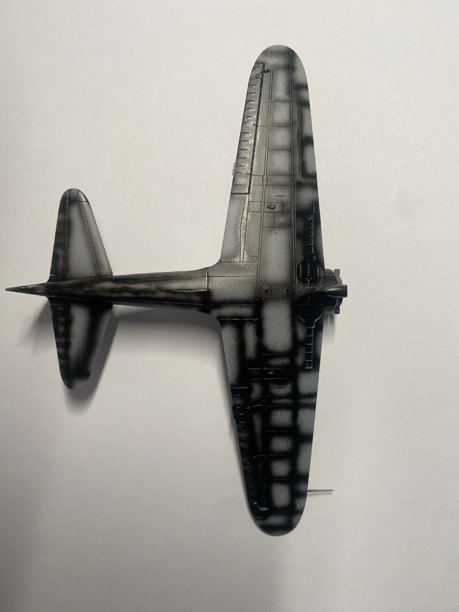 Всем доброго времени суток! Сегодня предлагаю Вашему вниманию вторую и заключительную часть по сборке A6M2b от фирмы Hasegawa. В предыдущей части модель с маленькими доработками в кабине была собрана, нанесена грунтовка. В этот раз я не ошибся: 1000 не дала зернистости, но теперь хочется попробовать, что будет с 1500. Также добавил из черной лески тормозные шланги. Задул прешейдинг. В инструкции основной цвет самолета - H61 IJN. Подчеркиваю - японский морской серый. Взяв пробу я увидел, что этот цвет очень сильно отличается от того «молочного» серого, в котором обычно представлены Zero. Тем не менее, найдя несколько моделей именно в этом цвете (как правило, его высветляли), я решил следовать инструкции, но добавил немного H62 IJA (того самого «молочного». Ниши кисточкой покрасил в Металлик, капот - антибликовая смесь (черный+синий с большим количеством последнего), винты - Silver. Ничего придумывать не стал, кроме выделения в H62 пары пластин на крыльях и подвесного бака. После с