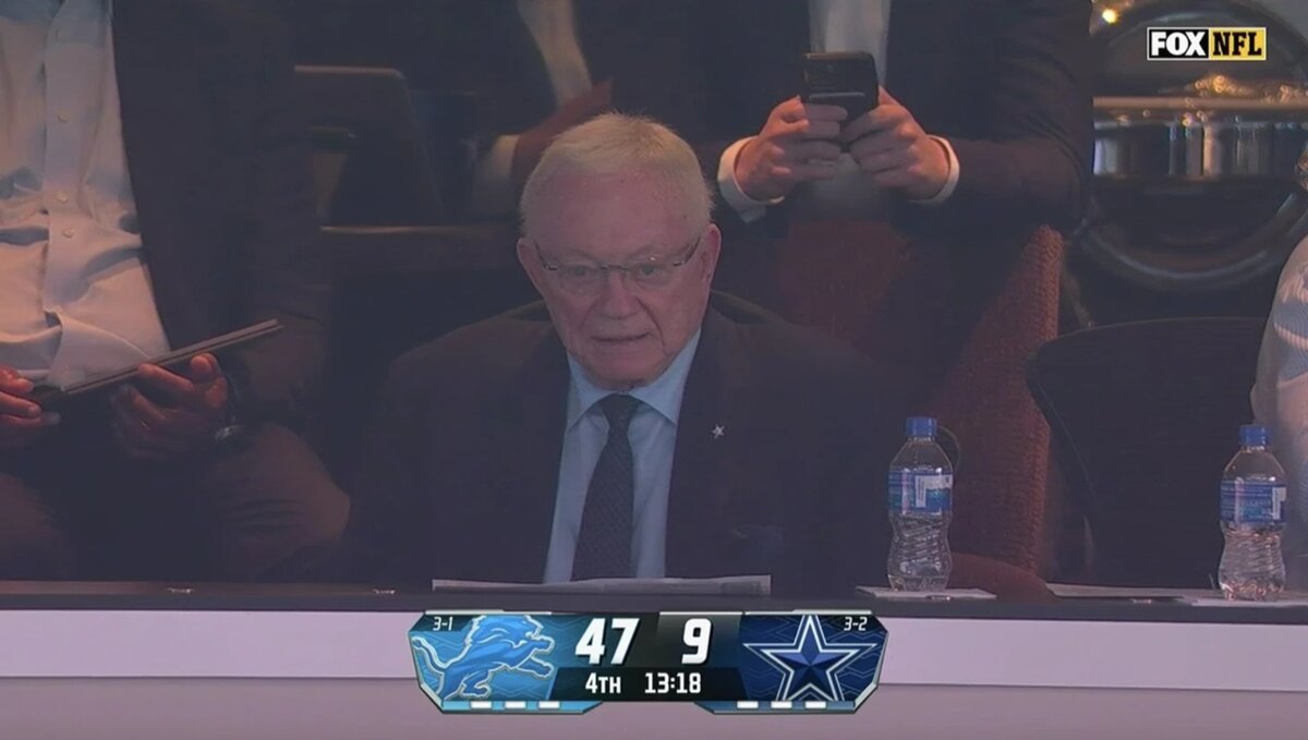 Вот так выглядело лицо Джерри Джонса в его 82-й день рождения, когда «Детройт» уничтожил его любимую команду со счетом 47:9: