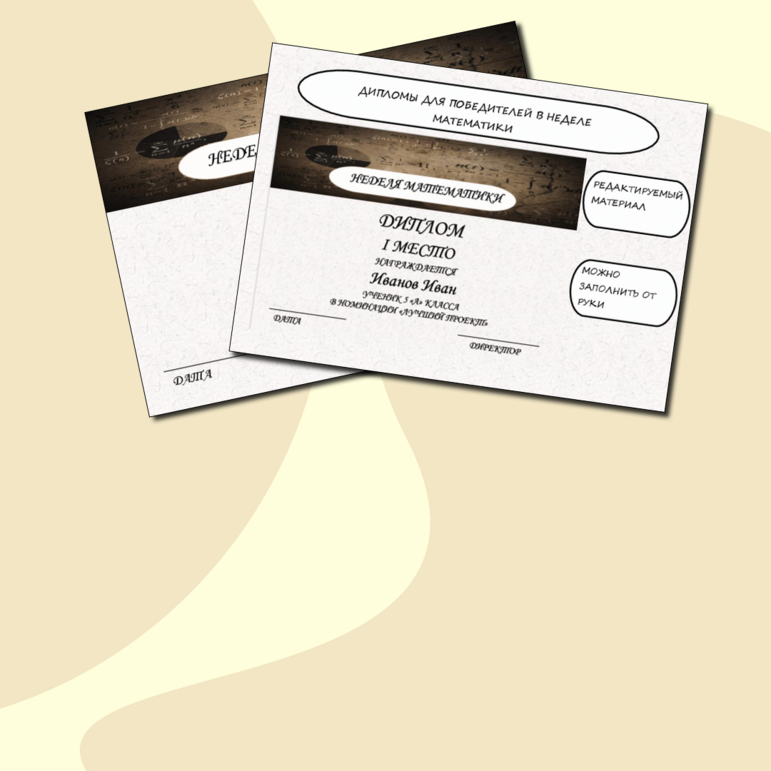 Данная методическая разработка будет полезна учителю математики при проведении недели математики в школе. материал можно редактировать, что позволит наградить дипломом и "за участие".