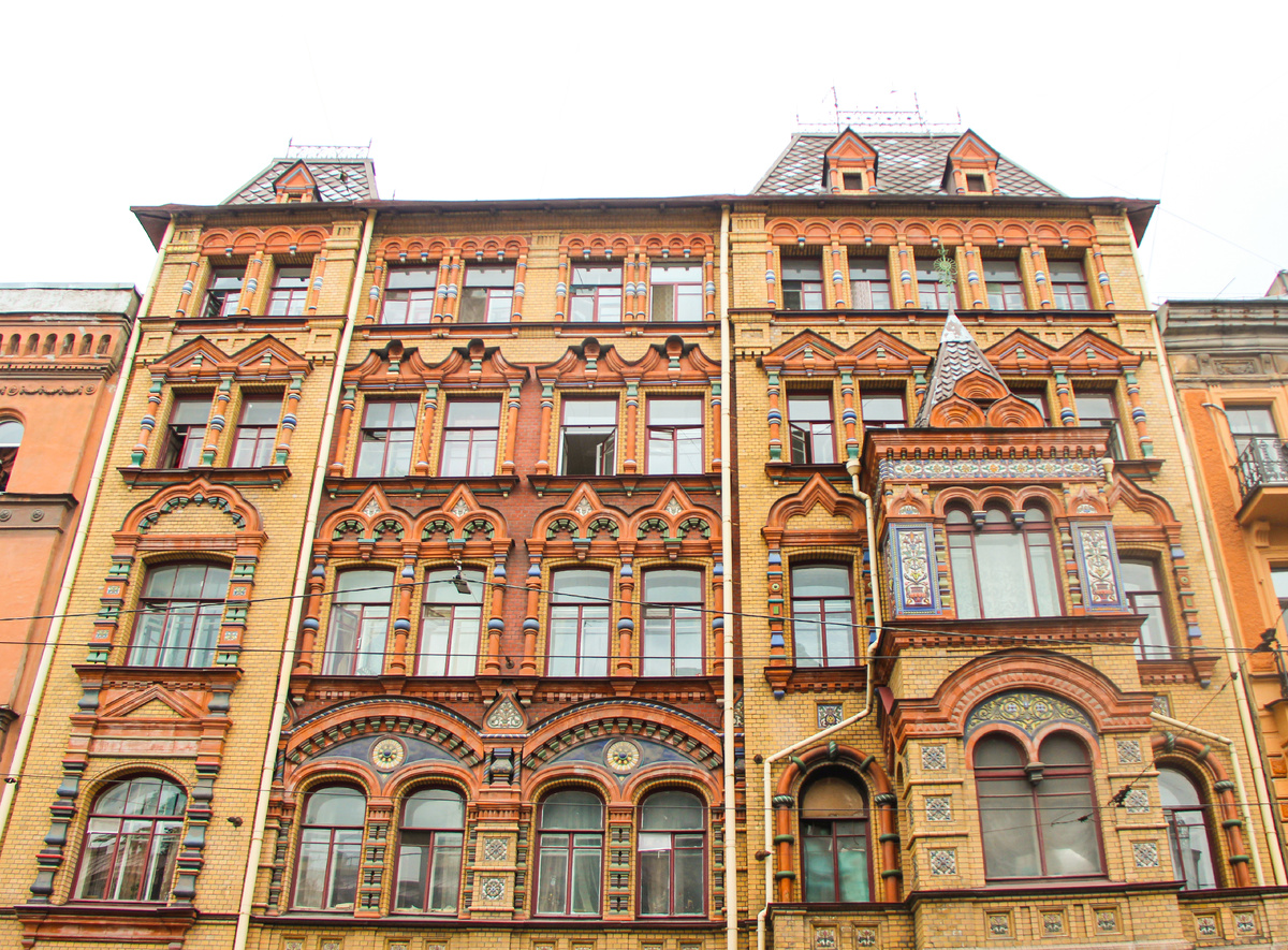 Дом на Колокольной улице – это яркий пример архитектурного стиля модерн, но с явным влиянием неоклассицизма. Фасад здания отличают плавные линии, изящные декоративные элементы и обилие лепнины.