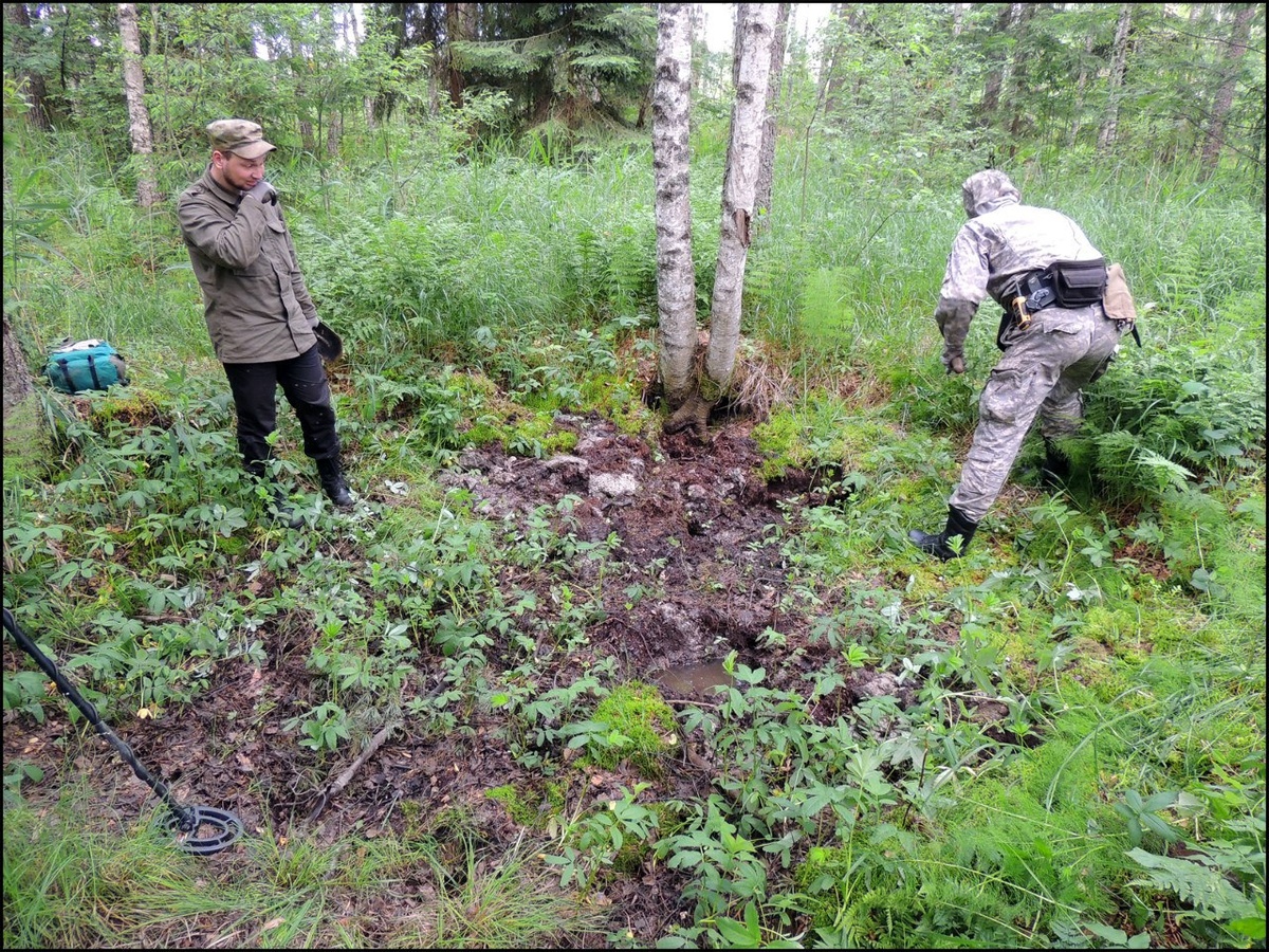 Тогда, в феврале 1940-го, здесь разорвалось что-то очень немаленькое. Очертания воронки проявляются по мере того, как мы выбрасываем из нее грунт. Тяжелый, вязкий, сырой. Здесь, на самом краю болота, глина смешалась с торфом, надежно запечатав все, что оказалось внизу. Той огненной зимой в эту яму сложили погибших солдат. Может быть, воткнули сверху палку - чтобы потом, когда отгремят бои, сюда пришли похоронные команды и сделали все по-человечески. Но они не пришли. Следующие восемь десятилетий карельский лес залечивал свои раны, старательно ровнял и прятал под ковром папоротника эту безвестную солдатскую могилу.