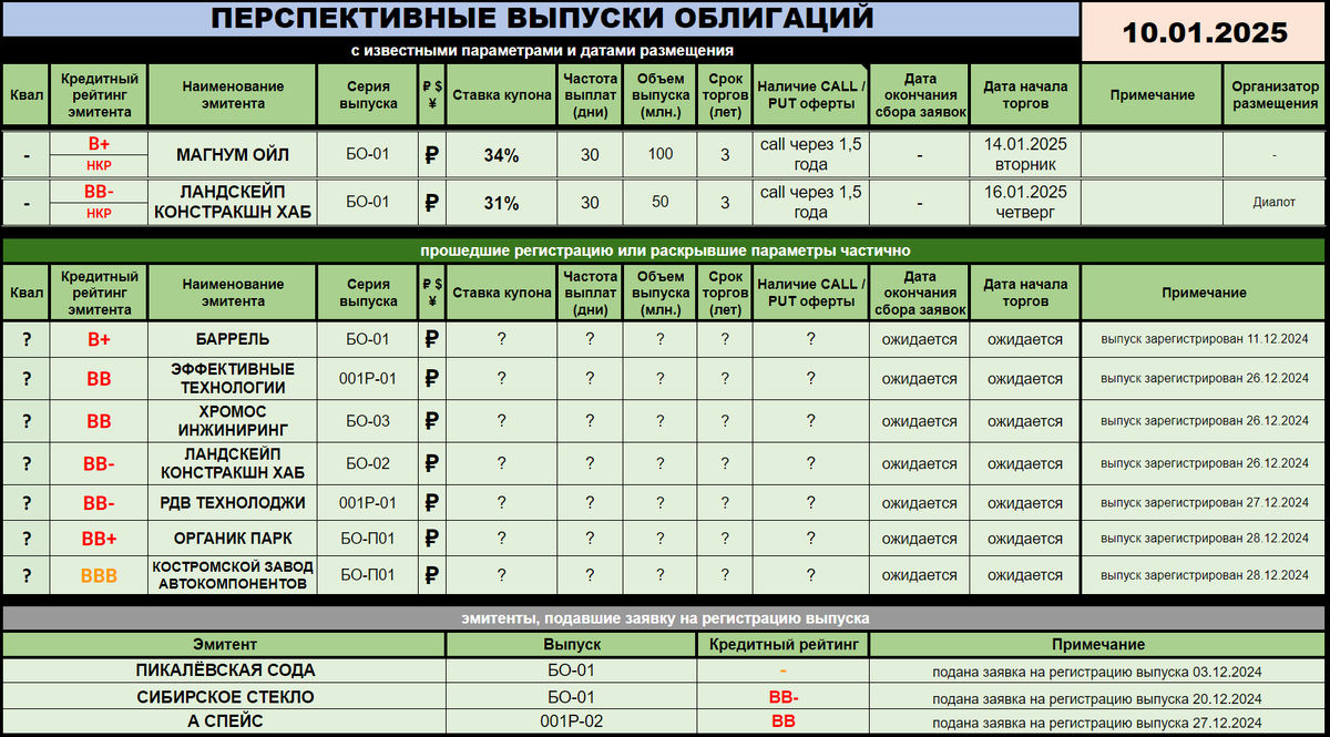 - ТЕХПОРТ (СЕЛЛЕР) находится в технических дефолтах сразу по двум выпускам. 8,22 миллиона эмитент должен по бумагам БО-03 $RU000A1083C2, и 39,16 миллиона (купон + амортизация) по выпуску БО-01 $RU000A106KY0. Технический дефолт по первой выплате станет полноценным 14 января, на ленте раскрытия эмитент молчит.