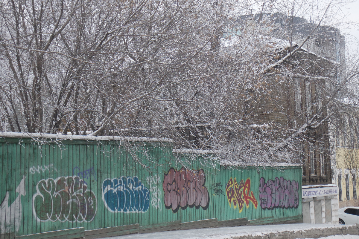 Этот дом по адресу Профсоюзная 9А интересен тем, что с одного боку обшит досками, а другого он бревенчатый, брутальный: