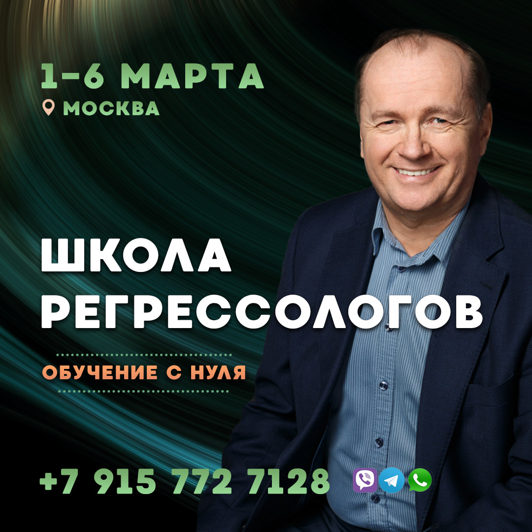 Станьте профессионалом в области регрессионной терапии! Современный мир требует новых подходов и уникальных навыков. Если вы ищете способ изменить свою жизнь и начать карьеру в сфере, где востребованы глубокие знания и необычные методы работы, тогда наша программа для вас. Хотите стать специалистом в области духовной трансформации и помогать людям находить ответы на важные жизненные вопросы? Тогда вы на верном пути в нашу Школу! Ведём набор группы на обучение в Москве с 1 по 6 марта. Что предлагает наш курс? - Авторская методика от практикующего специалиста с 20-летним опытом, ученика Долорес Кэннон и Майкла Ньютона. - Реальная теория и практика: вся необходимая информация для того, чтобы понять принципы функционирования мира и научиться использовать эти знания в своей работе. - Отработка навыков: вы научитесь проводить сеансы регрессивной терапии и помогать своим клиентам открывать их внутренний потенциал. - Расширение сознания: получите доступ к уникальным техникам, которые позволят