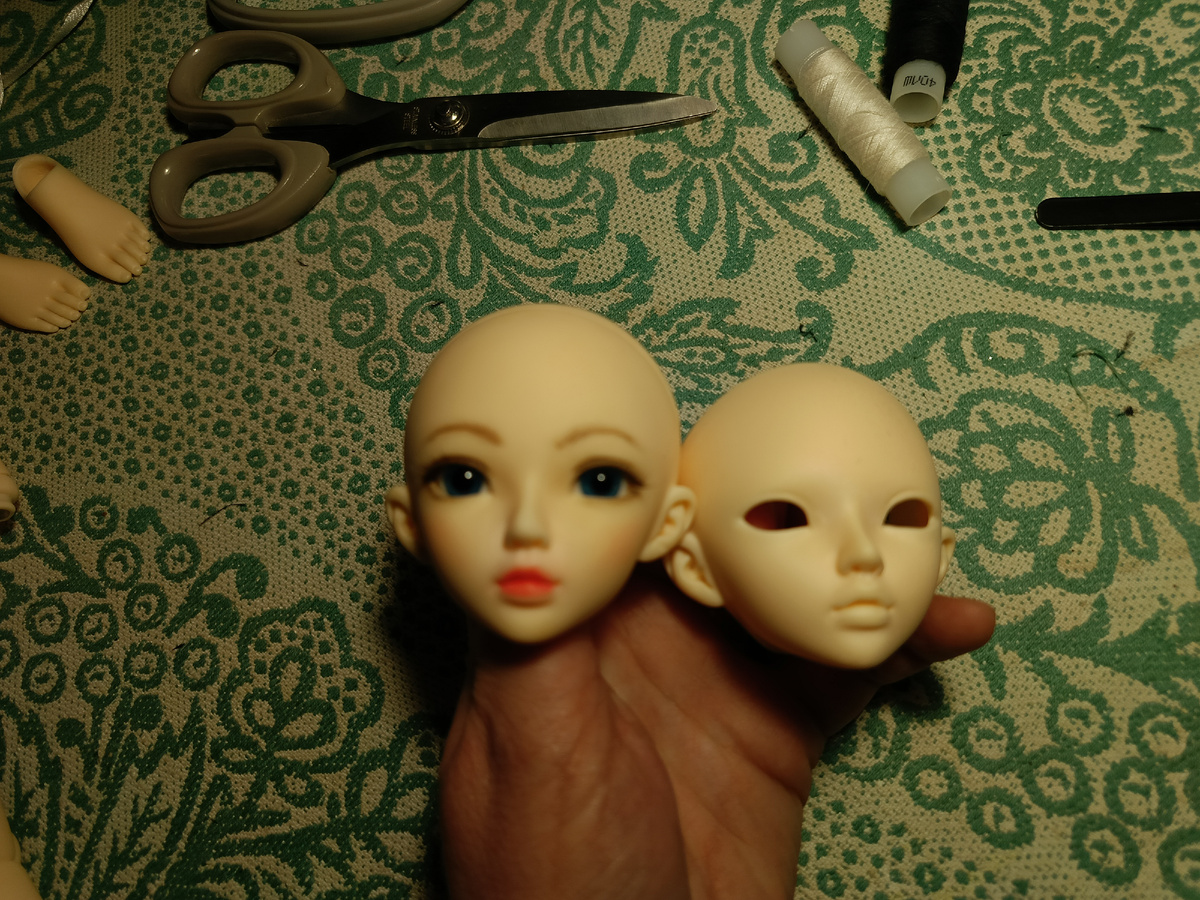 Штрихи, причём, в буквальном смысле😁, поскольку необходимо было сделать макияж одной из кукол. Для героинь взяты головки на одном молде - Chloe (Хлоя). Это достаточно мягкие черты лица и крупные глазки. Для Одетты я взяла голову, которую делала еще позапрошлым летом, а Одиллию рисовала на новой голове. Мейк получился достаточно грубым. Глаза специально выделила черным, и губы яркие. Глаза девочкам вставила разные - голубые и карие. Украшения на голову однотипные: ободок, перья, маленькие короны. Ну и чёрные пуанты для Одиллии: Как только все окончательно просохнет (клей должен закрепиться), сниму девочек в полном облачении.