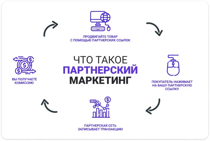 Партнёрский маркетинг — это продвижение товаров или услуг других компаний за комиссионное вознаграждение. Вам платят за каждое действие, выполненное через вашу партнёрскую ссылку (покупка, регистрация, подписка).
