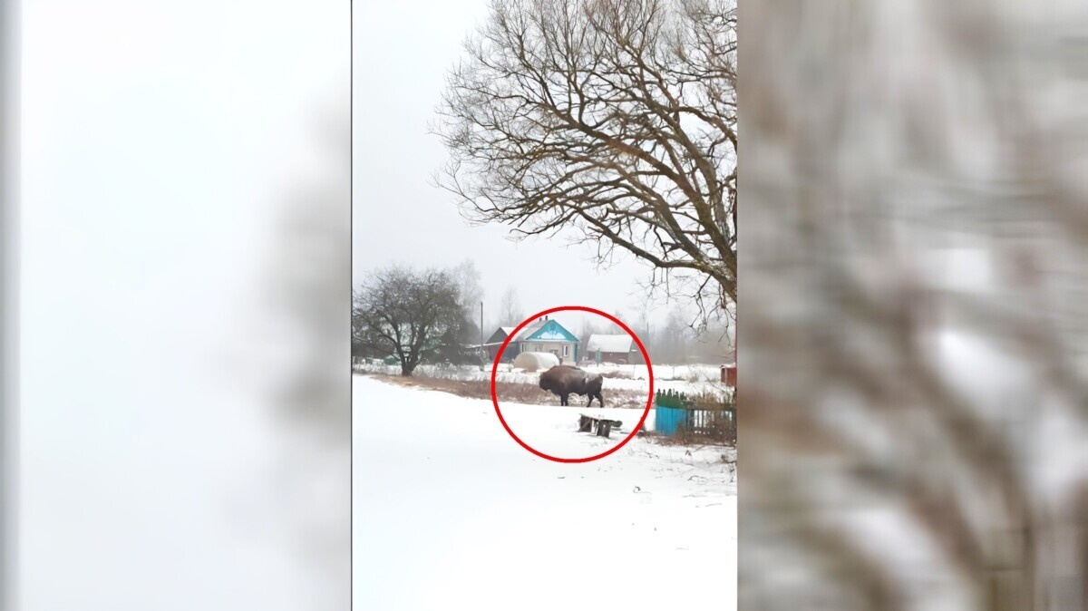 «Колядовать» или «искать жену»? — В белорусскую деревню пришли зубры — Видео