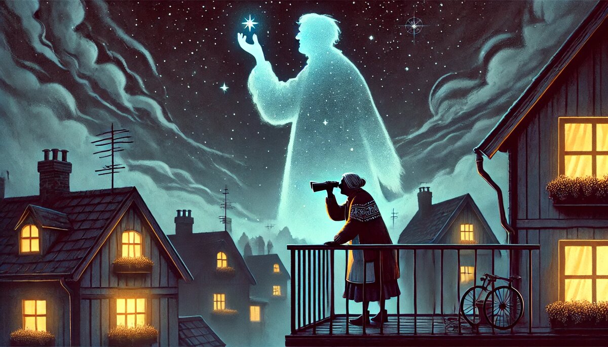 Женщина была уверена, что это видение — не галлюцинация. Она чувствовала, как в груди шевелится что-то странное: отдалённая тоска, глухая тревога. Тогда ночью она взяла старый бинокль, вышла на балкон и начала шептать. Она говорила вслух слова, которые помнила с детства, — о доброте, о красоте, о мечтах. Её голос дрожал от вечернего ветра.