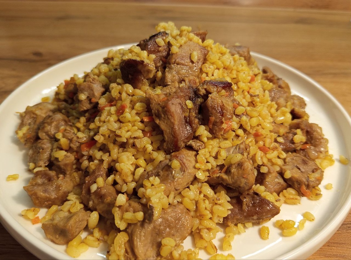 Очень вкусное, ароматное блюдо, булгур получается рассыпчатым, мясо нежное.