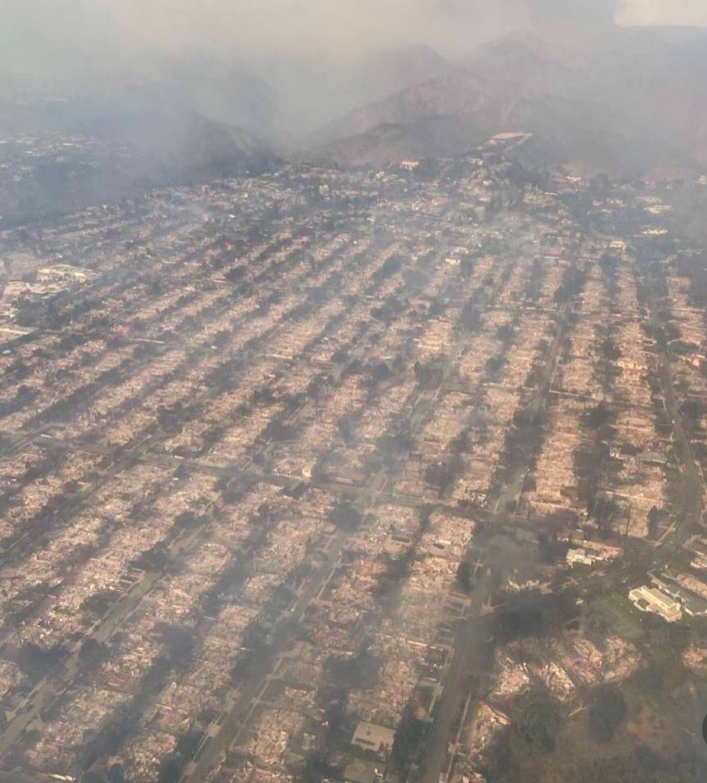 Все сгорело в Лос-Анджелесе. Элитнейший район Пасифик Палисейдс, в среднем стоимость домов 5-9 млн. долларов. СМИ пишут, что несколько месяцев назад страховщики убрали пожары из страховых случаев. 50 миллиардов долларов ущерба.Уже.Восстанавливать граждане Америки будут за свои кровные.