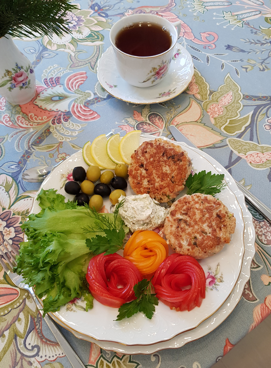 Добрый день, дорогие друзья! Сегодняшнее утро я предлагаю начать с ароматных и румяных котлеток из рыбы. Для приготовления нам понадобятся: 400 грамм филе горбуши, 400 грамм филе минтая, 40 грамм зеленого лука, 80 грамм кус-куса, 1 яйцо, 1 чайная ложка соли, 1 чайная ложка приправы «Прованские травы», 3 столовые ложки подсолнечного масла. Приготовление: нарезать мелким кубиком филе горбуши. Нарезать мелким кубиком филе минтая. Нарезать зеленый лук и добавить его к рыбе. Добавить в ёмкость яйцо, приправу, соль, кус-кус. Перемешать и дать постоять в холодильнике 20 минут. Сформировать котлетки. Разогреть сковороду, налить растительное масло, выложить котлетки. Обжарить с обоих сторон до золотистой корочки. Сложить обжаренные котлеты все в сковороду и довести до готовности в духовом шкафу в течение 7 минут при температуре 170 градусов Цельсия на режиме верхний и нижний нагрев. К котлетам можно приготовить соус тартар, смешав майонез, измельченный чеснок, репчатый лук, укроп, каперсы,