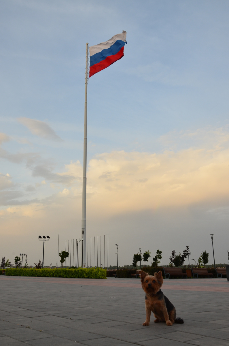 Количество триколоров говорит о том, что мы попали в День России и в городе массовые торжества и гуляния. В этот день даже самый злобный комментатор был в городе! Да, да, то самый Д.А. Медведев, наш промежуточный президент.