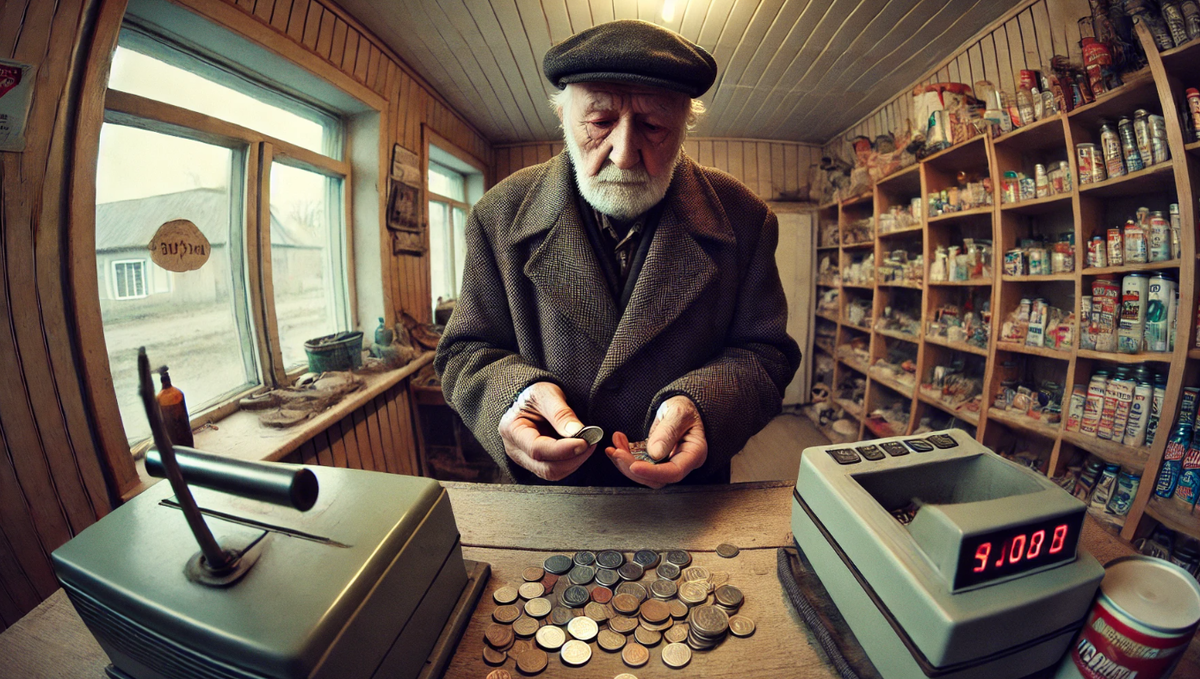- Пятьдесят шесть… семьдесят… восемьдесят… - мужчина пересчитывал мелочь дрожащими руками. Монетки падали на прилавок, некоторые скатывались на пол. Он наклонился, чтобы их поднять, но тут же снова уронил несколько копеек.