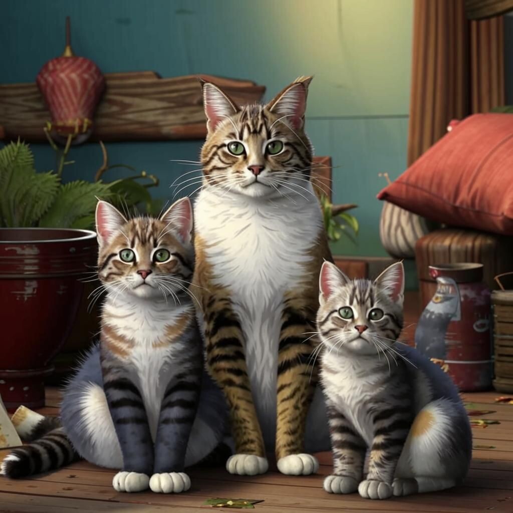 В уютном двухэтажном доме жил красивый серый кот по имени Барон. У него были пышные усы, элегантная походка и безупречные манеры. По соседству жили две очаровательные кошечки – рыжая Лапочка и белоснежная Снежинка. Лапочка была весёлой и озорной. Она обожала гоняться за бабочками в саду и играть с клубками пряжи. А Снежинка отличалась спокойным и задумчивым характером – целыми днями она могла сидеть на подоконнике и наблюдать за птицами. Каждое утро Барон начинал с того, что приводил в порядок свою серую шёрстку и начищал до блеска коготки. Затем он отправлялся на прогулку, обязательно захватив с собой что-нибудь вкусное для своих соседок. "Доброе утро, прекрасные дамы!" – говорил он, встречая кошечек в саду. Лапочке он приносил маленькую рыбку, а Снежинке – свежие сливки в блюдечке. Однажды летним днём Барон решил устроить для подружек особенный сюрприз. Он долго готовился: собрал в саду самые красивые цветы, попросил своего друга скворца спеть несколько песен и даже научился танцева
