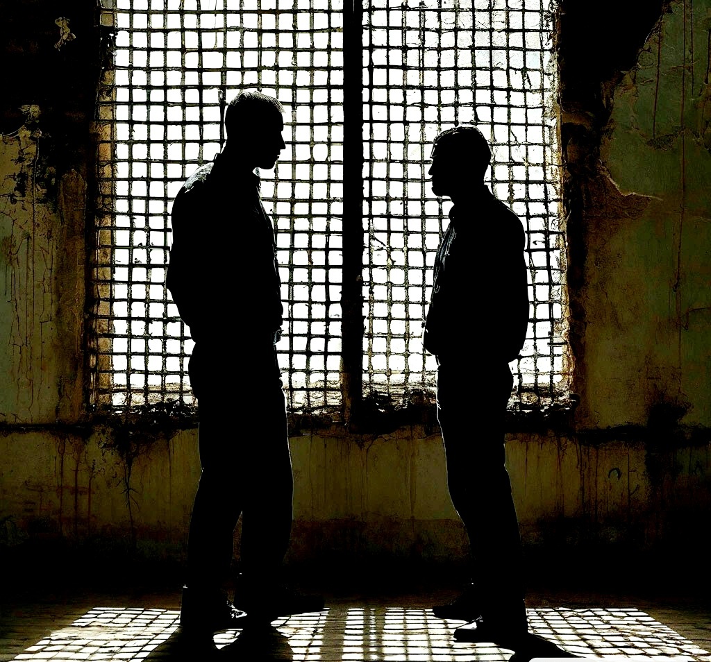 Дверь открылась, конвойный завёл заключённого в кабинет. Тот был ростом под 2 метра, имел шрам на лице во всю щёку.