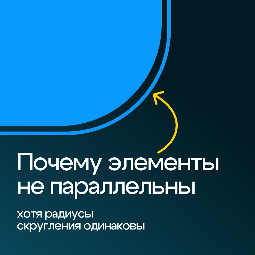 Когда мы делаем прямоугольник со скругленными углами и в качестве окантовки делаем другой прямоугольник, но больший по размеру, мы часто присваиваем им одинаковые значения на скруглениях. Но наши линии становятся не параллельными и связано это с тем, что центры радиусов скругления находятся в разных точках.