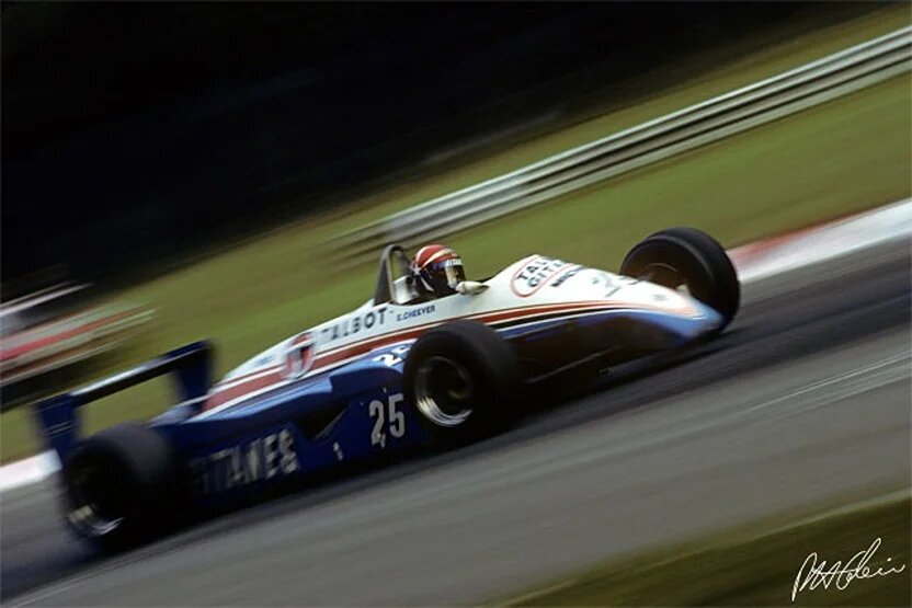 Эдди можно увидеть вверху на скорости в Ligier JS19 в Монце в 1982 году, а внизу - с великим Ники Лаудой на ГП Великобритании в Брэндс-Хэтч в 1984 году.