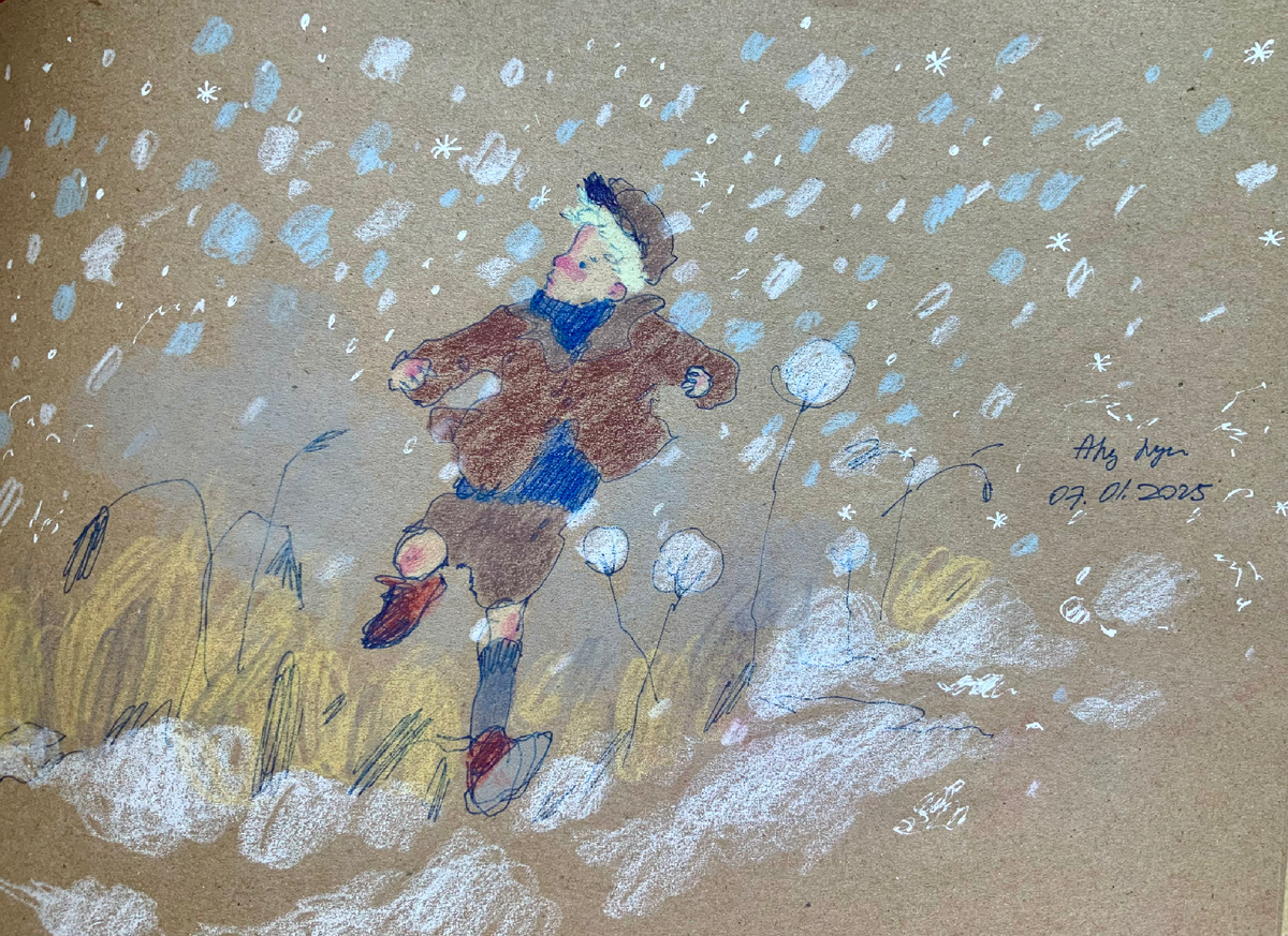 Почему-то прямо в сердце льются Слова Ивана Юшина 🌾🌨️⛅️🫧❄️ Песня летняя, но я вспомнила о ней, когда нарисовала этот рисунок. Но глядя на картинку, можно вспомнить любую другую песню, где поется о траве, снеге, зиме, весне, осени, а также о том, как кто-то куда-то бежит :) Трава выглядывает из под снега поздней осенью, во время оттепели зимой и ранней весной.
