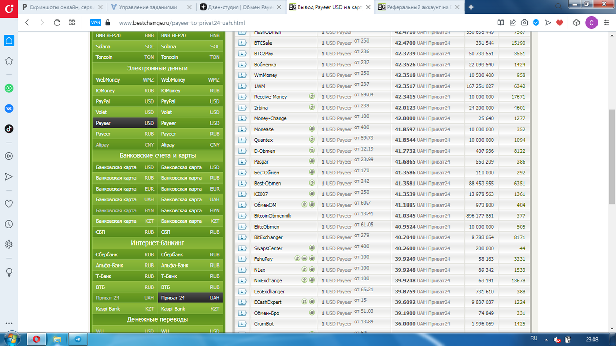 РЕГИСТРАЦИЯ Всего по направлению Payeer USD → Приват 24 UAH работает 35 надежных обменных пунктов.