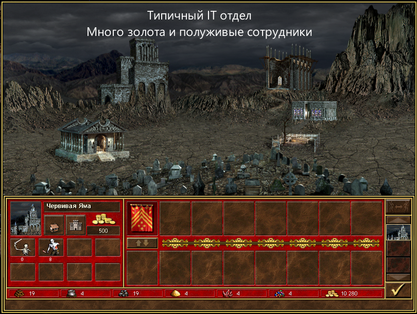 Давайте рассмотрим основные концепции теории менеджмента через призму HOMM3! Подумал я и согласились голоса в голове. Менеджмент - это процесс координации работы людей для достижения целей организации. У нас там планирование, организация, мотивация, контроль, принятие решений, лидерство и управление ресурсами. Конечная цель менеджмента - сделать организацию эффективной и результативной в тактическом и стратегическом плане. Все как в "героях"! Планирование: ресурсное управление Вот вам дали прекрасный Некрополис (ИТ отдел) и тимлида с командой выгоревших джунов. Отсыпали немного ресурсов и дали конечную цель - стать самым крутым отделом. Если бездумно потратить ресурсы то скиснешь довольно быстро. Конкурентная среда слишком агрессивна. И потому, включаем стратегическое мышление. Первое, что нужно сделать - оценить ситуацию: какие ресурсы есть в наличии, какие проблемы стоят перед командой. Второе — выстроить краткосрочные и долгосрочные цели. В краткосрочной перспективе: действовать ре