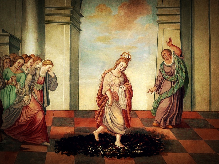 Согласно легендам, самым известным персонажем проходившим испытание огнём была Эмма Нормандская, доказывая свою невиновность она прошла по углям и не получила никаких ожогов.