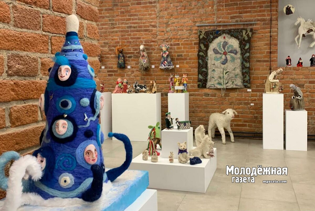 Волшебная экспозиция, мгновенно погружающая посетителей в фантастический мир, наполненный мифологическими персонажами, разместилась в стильной «Лофт» локации самого творческого пространства Уфы. Создание любой экспозиции, в выгодном свете представляющее для зрителей предметы искусства — нелегкое дело, требующее хорошего вкуса и высокого галерейного профессионализма. Ну, а гармонично разместить разные по размерам и жанрам куклы так, чтобы прочитывались заложенные смыслы, угадывался даже без табличек иллюстрируемый композицией фольклор, делая при этом акценты на особых техниках и материалах — высший пилотаж! Сразу бы хотелось отметить специально заказанные для выставки Благотворительным фондом «Мирас» белые подиумы разной высоты, шикарно вписавшиеся в краснокирпичное брутальное пространство «Лофта». Их логично поддержали этнотемой и цветом свисающие сверху снежинки, вырезанные в форме башкирского орнамента. А еловые ветви сценографии — метафора сказочного леса.