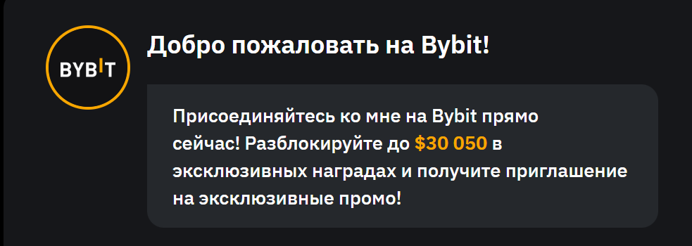 Тут собраны все ссылки на телегам каналы с сигналами с хорошей проходимостью + ссылки на бонусы и надежные биржи. 👉Бот Veles - торгует в ByBit, BingX, GATE IO, KuCoin, okx. ❗❗❗Бот торгует и зарабатывает за вас на основных крипто биржах❗❗❗ Всем рекомендую забирать бонусы при регистрации от крипто брокеров: Бонус от ByBit до 30050 $ если вы уже зарегистрированы и не получали этот бонус, смотрим на скрин, должно быть так: То вот инструкция как его все же получить. ✅Надежные Крипто биржи проверены временем✅ ❗❗❗Внимание! Не нужно все деньги хранить на одной бирже, безопасней распределять их по множеству надежных. Только так в крипто мире можно сохранить свое. Это главное правило инвестора - трейдера! Вот список, крипто-брокеров, где я храню свою крипту и много раз выводил. С этих бирж выводил на банковскую карту, много раз. ПРОВЕРЕНЫ ЛИЧНО МНОЙ! ❗❗❗Внимание! Реф код дает вам возможность получить высокий бонус, обязательно проверяйте! К примеру БАЙБИТ дает рекордный бонус до 30050 $ эт