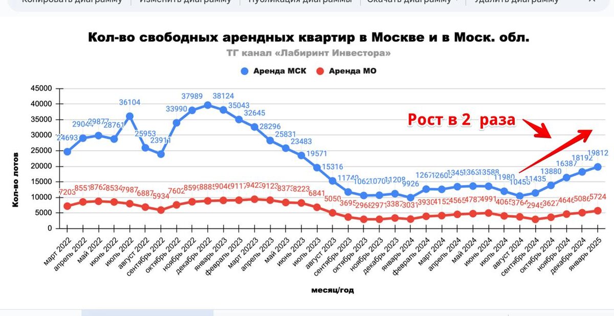 📍Продолжаю мониторить рынок аренды Москвы. И, честно говоря, тренд пока скорее негативный, ведь количество свободных арендных квартир продолжает прирастать каждый месяц. К слову, опять всё происходит не так, как утверждали эксперты. Помните, что они говорили? Что аренда улетит в стратосферу, ибо люди не будут покупать, а будут арендовать. В итоге что мы видим? А видим мы, что вторичный рынок живее всех живых и продажи идут вполне неплохо: пост об этом тут ссылка. А вот рынку аренды, уже грозит чуть ли не затоваривание, и арендные ставки в некоторых локациях даже пошли вниз. Вот сейчас смотрю горячо любимый некоторыми подписчиками ЖК «Амурский Парк». Это же просто ужас, в этой локации сейчас сдаётся в аренду… 110 квартир! И ставки аренды на студии, тут сейчас примерно такие же, как и в ЖК «Ютаново», который в своё время, можно было купить раза в полтора дешевле, чем «Амурский парк». Так почему же выросло количество свободных арендных квартир? Забегая вперед скажу, что до сезона высоко